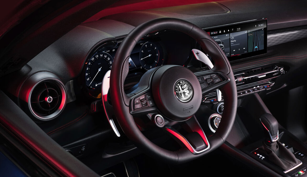 Περνώντας στο εσωτερικό της Alfa Romeo Tonale, το οδηγοκεντρικό ταμπλό δεν κινείται στη σχεδιαστική γλώσσα της μεγαλύτερης Stelvio. Στο κέντρο, δεσπόζει η οθόνη infotainment 10,25″ η οποία λειτουργεί με σύστημα Android, έχοντας παράλληλα τη δυνατότητα για αναβαθμίσεις over-the-air (OTA). Το καντράν είναι πλήρως ψηφιακό με διαγώνιο 12,25″.