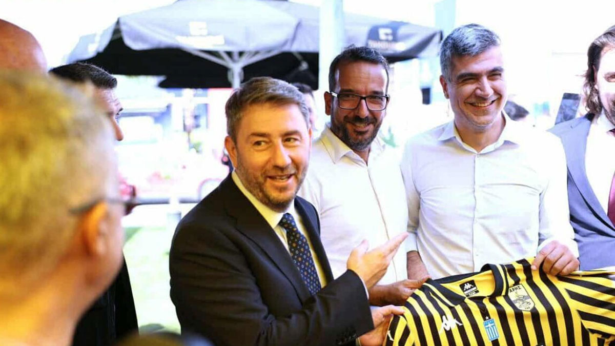 Κατά τη διάρκεια της παρουσίας του στη ΔΕΘ, ο κ. Ανδρουλάκης συνοδευόμενος από στελέχη και βουλευτές του κόμματος, βρέθηκε στο περίπτερο της ΠΑΕ Άρης. Εκεί τον υποδέχθηκε ο υπεύθυνος επικοινωνίας της ομάδας, Παντελής Ζουμπουλής, ενώ οι «κιτρινόμαυροι» του προσέφεραν ως αναμνηστικό μια φανέλα του συλλόγου.