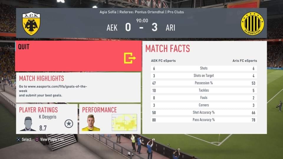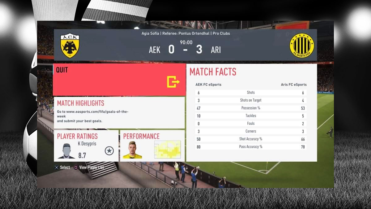 Μεγάλη νίκη με 0-3 πήρε το τμήμα e-soccer του Άρη απέναντι στην ΑΕΚ.