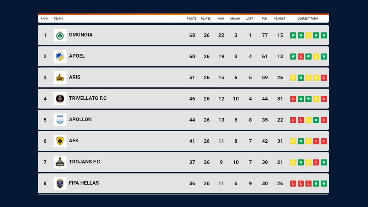 Οι κατατάξεις του ΑΡΗ: