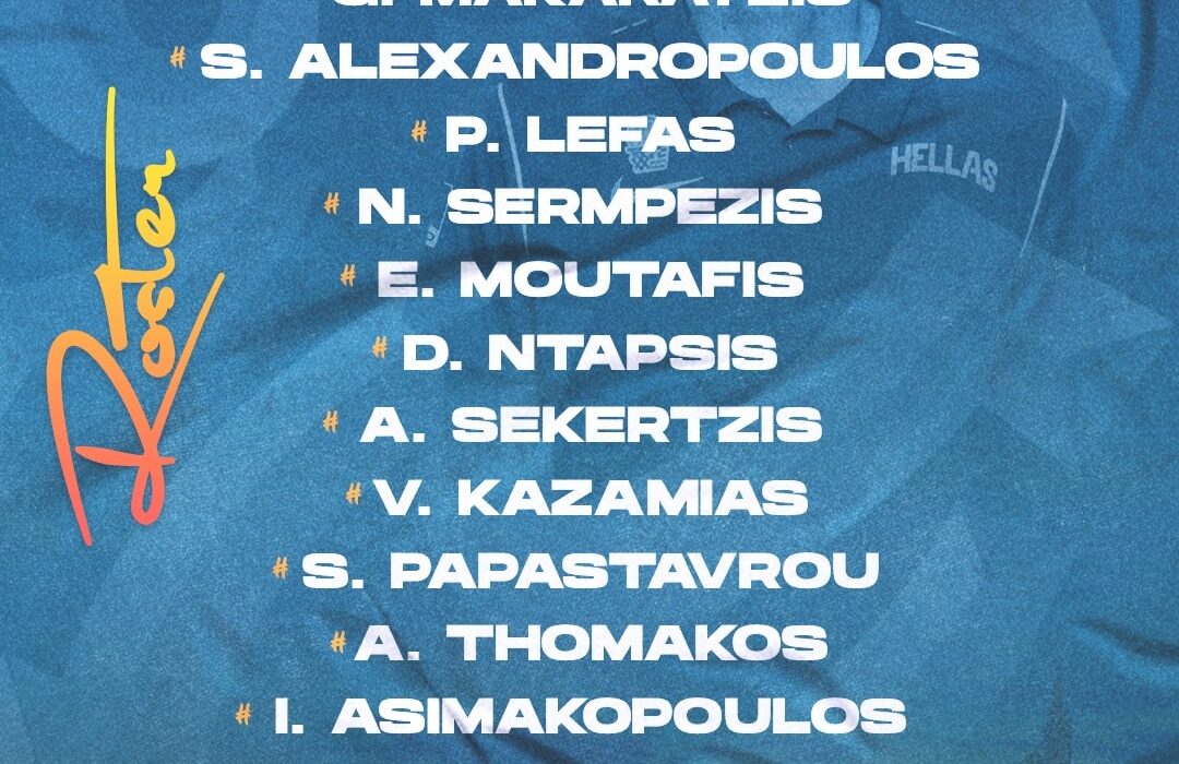 Η ΕΟΚ ανακοίνωσε τη 12άδα της Εθνικής για τη μεγάλη διοργάνωση. Ο ΑΡΗΣ θα εκπροσωπηθεί από τον Παναγιώτη – Ραφαήλ Λέφα και τον Βασίλη Καζαμία.