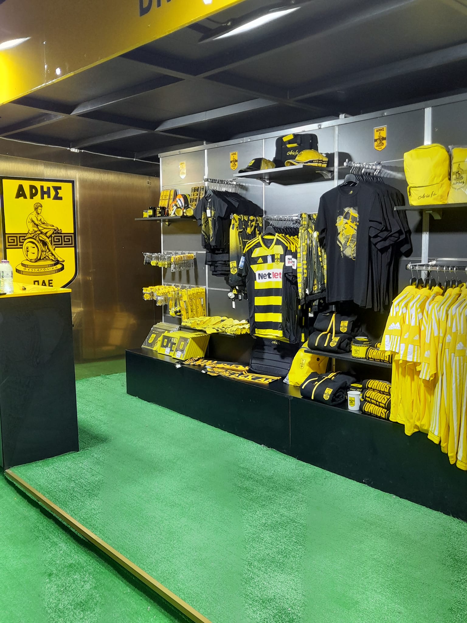 Στο περίπτερο λειτουργεί και η μπουτίκ της ΠΑΕ Άρης με όμορφες παρουσίες, από την οποία οι επισκέπτες θα μπορούν να προμηθεύονται τα επίσημα προϊόντα της ομάδας.