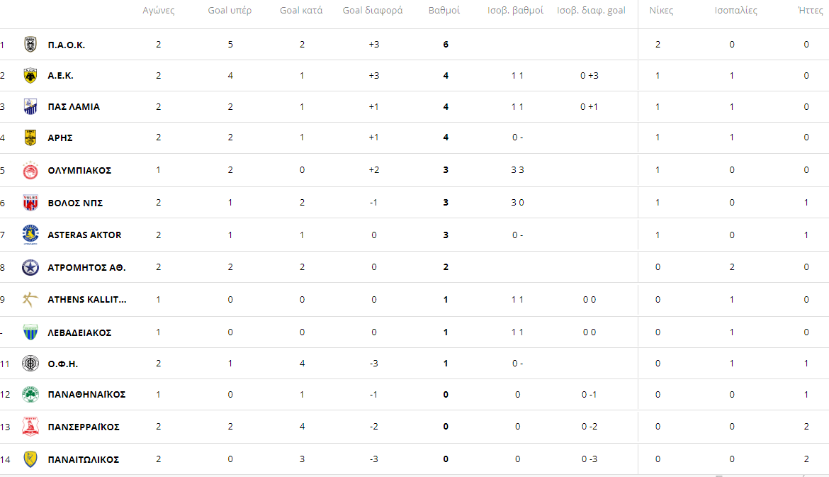 Ένα παιχνίδι απομένει για να ολοκληρωθεί η 2η αγωνιστική, αυτό που θα γίνει αύριο ανάμεσα στον Ολυμπιακό και την Καλλιθέα. Μετά τα σημερινά αποτελέσματα, ο Άρης βρίσκεται στην 4η θέση, ισόβαθμος με τον Παναθηναϊκό και την Λαμία τους 4 βαθμούς.