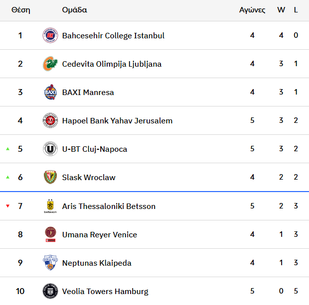 EuroCup: Τρεις αναμετρήσεις σήμερα για τον Α’ όμιλο – Ο Άρης εκτός 6άδας