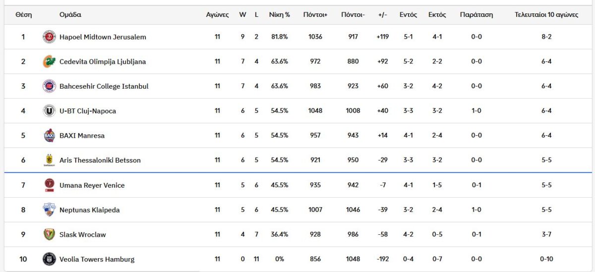 EuroCup: Το πρόγραμμα της 12ης αγωνιστικής στον όμιλο του Άρη Betsson