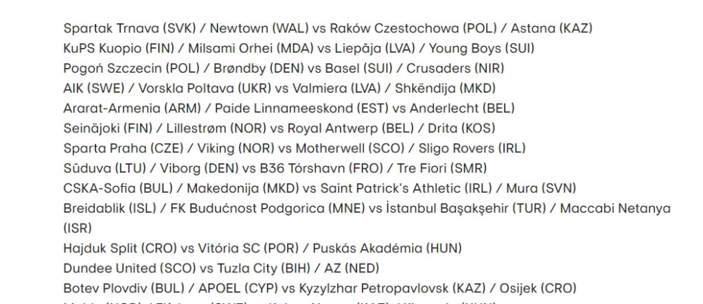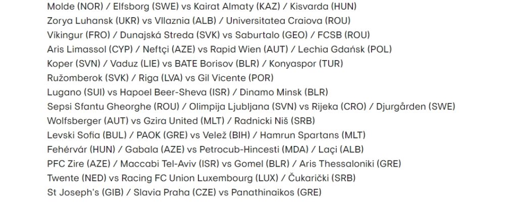 Ο ΠΑΟΚ θα συναντήσει απέναντι του μια εκ των Βελέζ ή Σπάρτανς, ενώ ο Παναθηναϊκός είχε την δυσκολότερη κλήρωση ελληνικής ομάδας σε αυτό τον γύρο, αφού θα αντιμετωπίσει την Σπάρτα Πράγας (είναι το φαβορί κόντρα στην Σεντ Τζόζεφς).