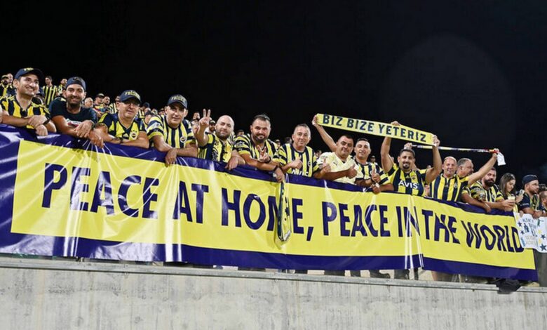 Την Πέμπτη η ΑΕΚ Λάρνακας υποδέχτηκε τη Φενέρ. Το ματς έγινε για το Europa League, με τους Τούρκους να έχουν πανό στο οποίο αναφερόταν: «Ειρήνη στο σπίτι, ειρήνη στον κόσμο».