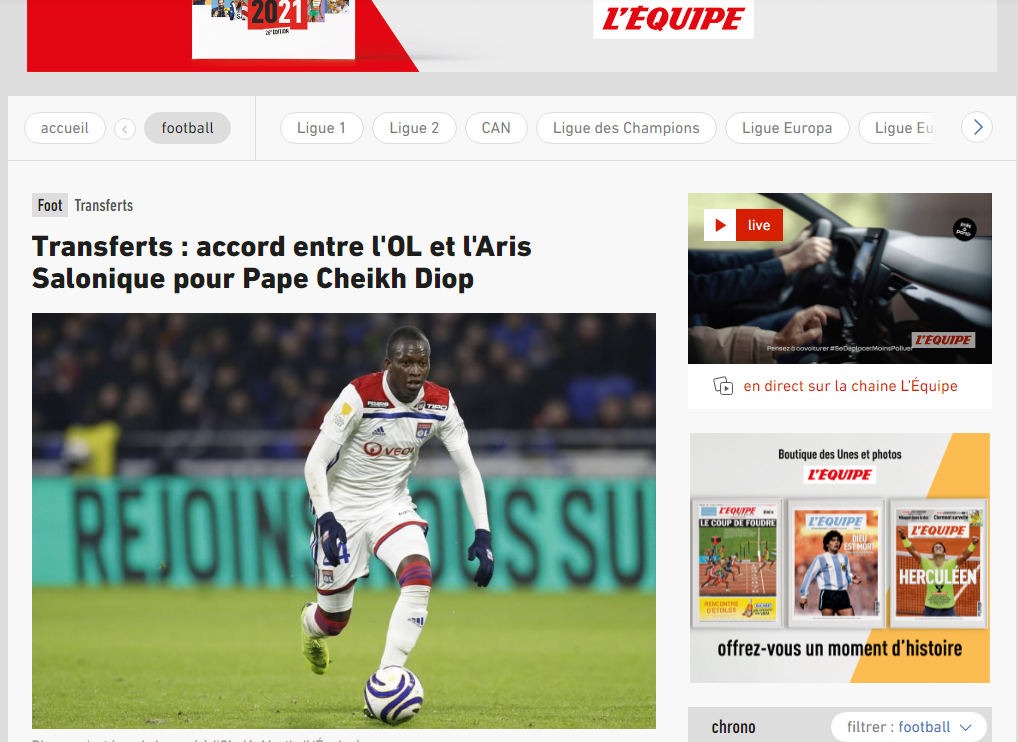 Για συμφωνία Άρη-Λυών για τον Σέιχ, γράφει η Lequipe (pic)
