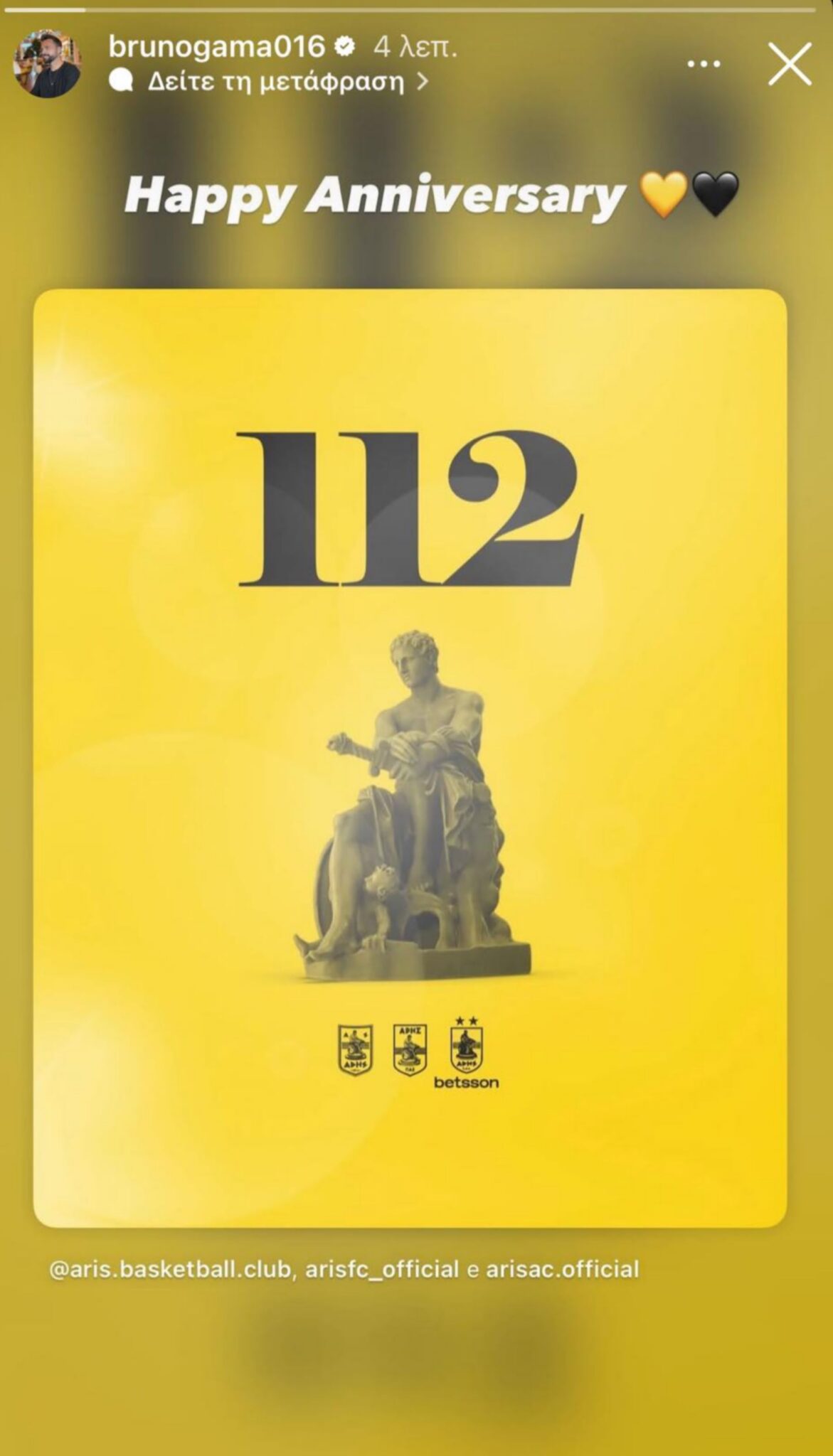 Εζησε σπουδαίες στιγμές στους κιτρινόμαυρους και με αφορμή τα 112 του συλλόγου, έκανε σχετικό ποστάρισμα. “Χρόνια Πολλά”, έγραψε ο Πορτογάλος, με το μήνημα να συνοδεύεται από δυο καρδιές, μια κίτρινη και μια μαύρη.