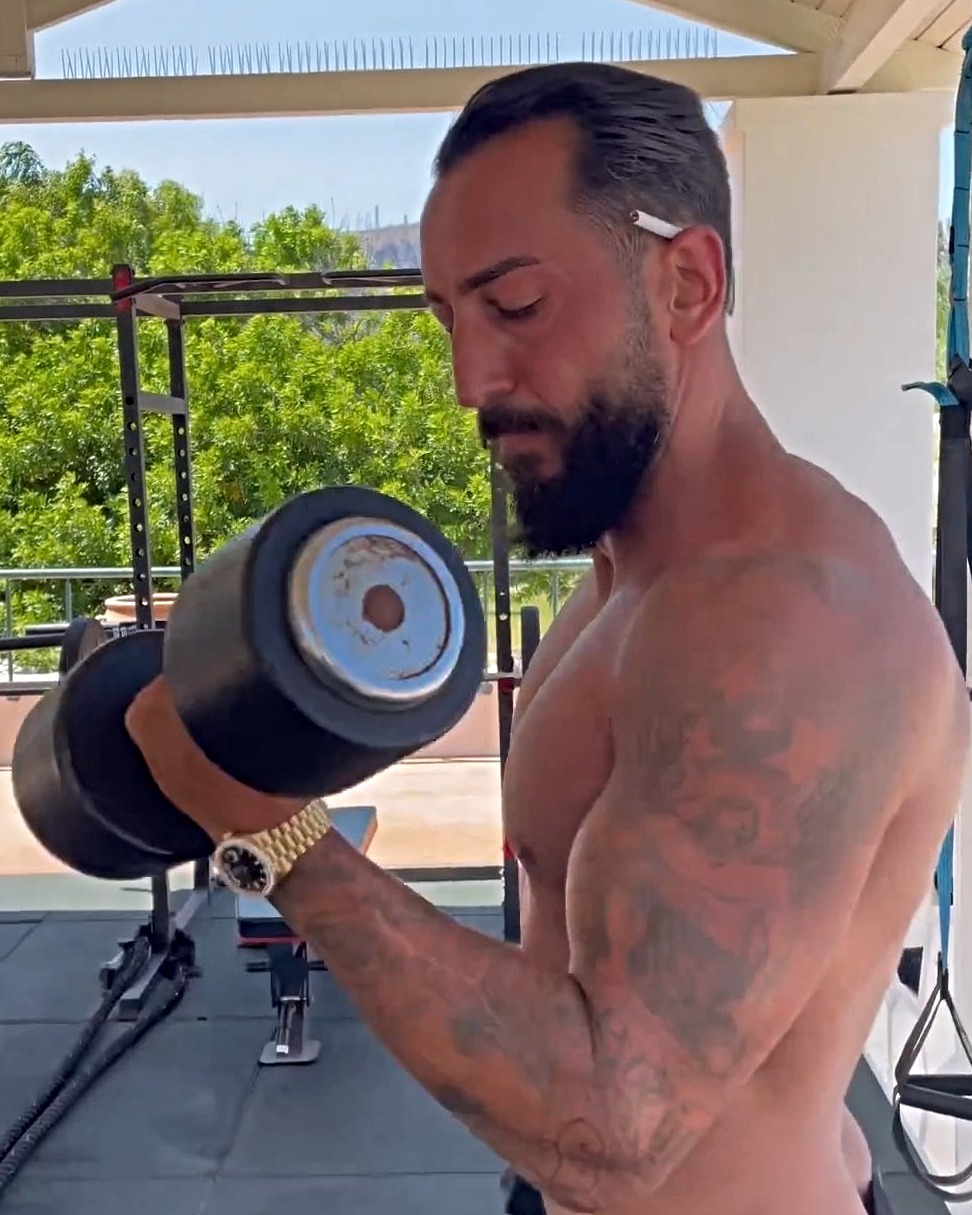 Ο παλαίμαχος, πλέον, ποδοσφαιριστής, γυμνάζεται με… τσιγάρο.