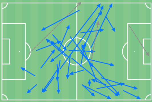 Έκανε λοιπόν σημαντική δουλειά σε αυτό το κομμάτι και απέφυγε τα λάθη, όμως επιχείρησε μόλις μία φορά να περάσει τη μπάλα μέσα στη μεγάλη περιοχή.