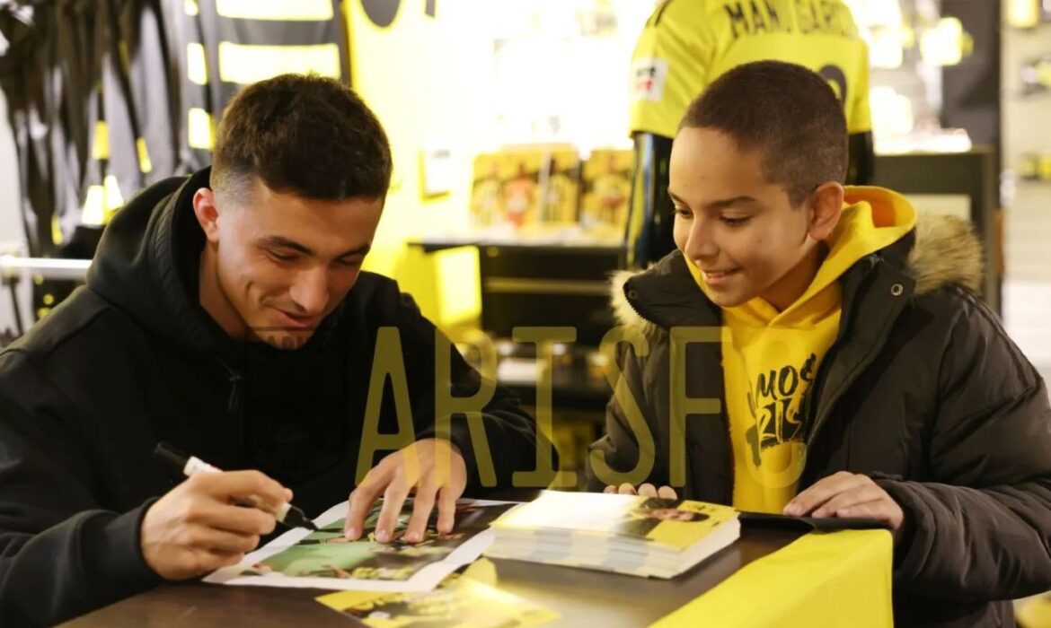 αυτόγραφα, αλλά και πάνω στα επίσημα προϊόντα του ARIS F.C. STORΕ”.