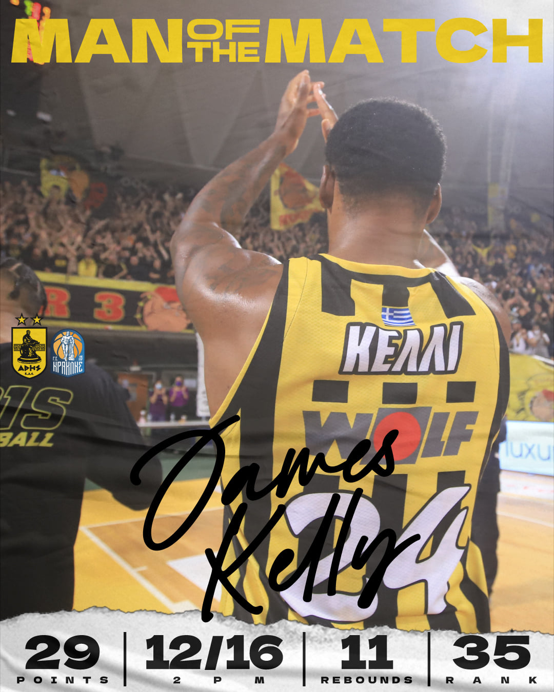 H KAE Άρης για τον «Man of the Match» Τζέιμς Κέλι