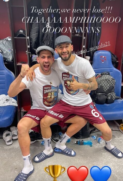Πρωταθλήτρια Τουρκίας αναδείχθηκε η Τράμπζονσπορ τρεις αγωνιστικές πριν το τέλος της τουρκικής Super League και δύο πρώην παίκτες του Άρη, οι Μανώλης Σιώπης και Τάσος Μπακασέτας το γιόρτασαν με τον δικό τους τρόπο.