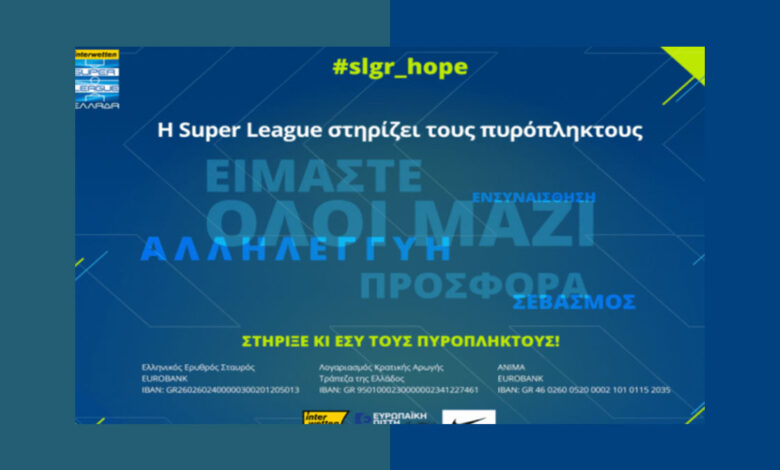 Με το hashtag #slgr_hope η Super League θα συντονίσει την εκστρατεία ενημέρωσης και ευαισθητοποίησης υπέρ των πυρόπληκτων.