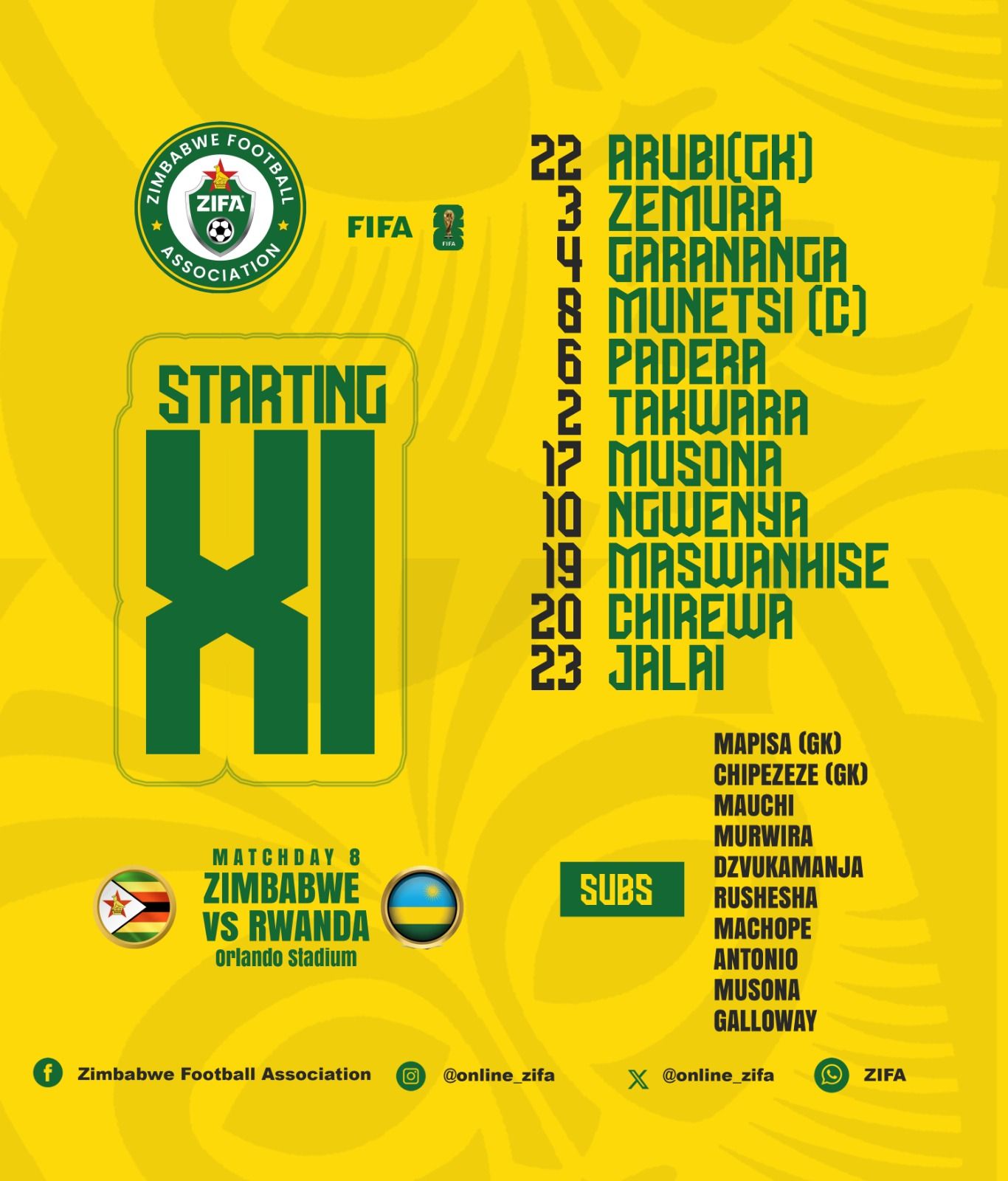 Με εντός έδρας ήττα (0-1) για τη Ζιμπάμπουε ολοκληρώθηκε το ματς απέναντι στη Ρουάντα, παιχνίδι που έγινε την Τρίτη για τα προκριματικά του Μουντιάλ 2026.