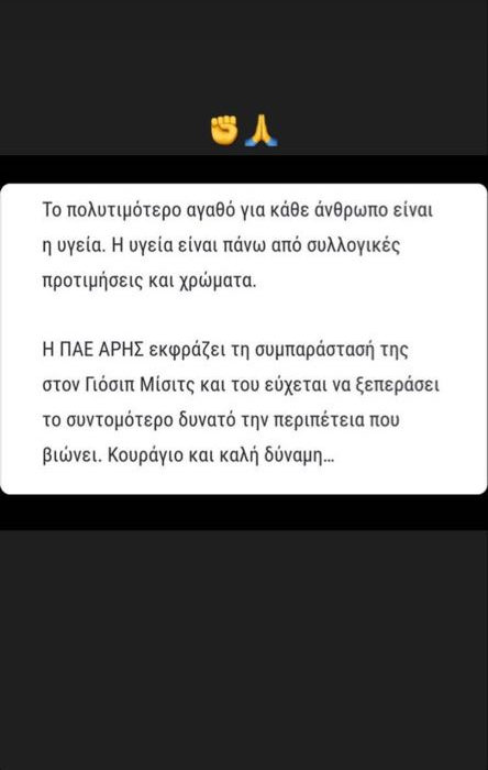Ο Άρης έδειξε ότι κάποια πράγματα είναι πάνω από την αντιπαλότητα, εκδίδοντας ανακοίνωση με αφορμή τον τραυματισμό που είχε ο Γιόζιπ Μίσιτς.