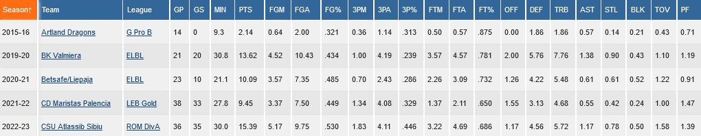 Το καλοκαίρι του 2022 συμφώνησε με τη ρουμανική BC CSU Sibiu, στην οποία έκανε την καλύτερη σεζόν της καριέρας του, μετρώντας 15.4 πόντους με 53% εντός παιδειάς και 44.6% στο τρίποντο, 5.72 ριμπάουντ, 1.17 ασίστ, 0.78 κλεψίματα και 0.5 κοψίματα.