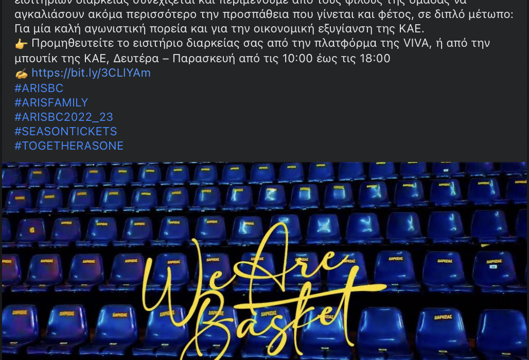 Η ΚΑΕ Άρης μέσω των social media, έστειλε μήνυμα προς τον κόσμο της ομάδας για τα εισιτήρια διαρκείας του Αυτοκράτορα, με την αγωνιστική σεζόν να έχει ξεκινήσει με τον καλύτερο τρόπο.