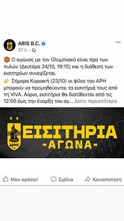 Μήνυμα υπενθύμισης για τα εισιτήρια της εντός έδρας αναμέτρησης κόντρα στον Ολυμπιακό την ερχόμενη Δευτέρα(24/10) έστειλε μέσω των social media η κιτρινόμαυρη ΚΑΕ.
