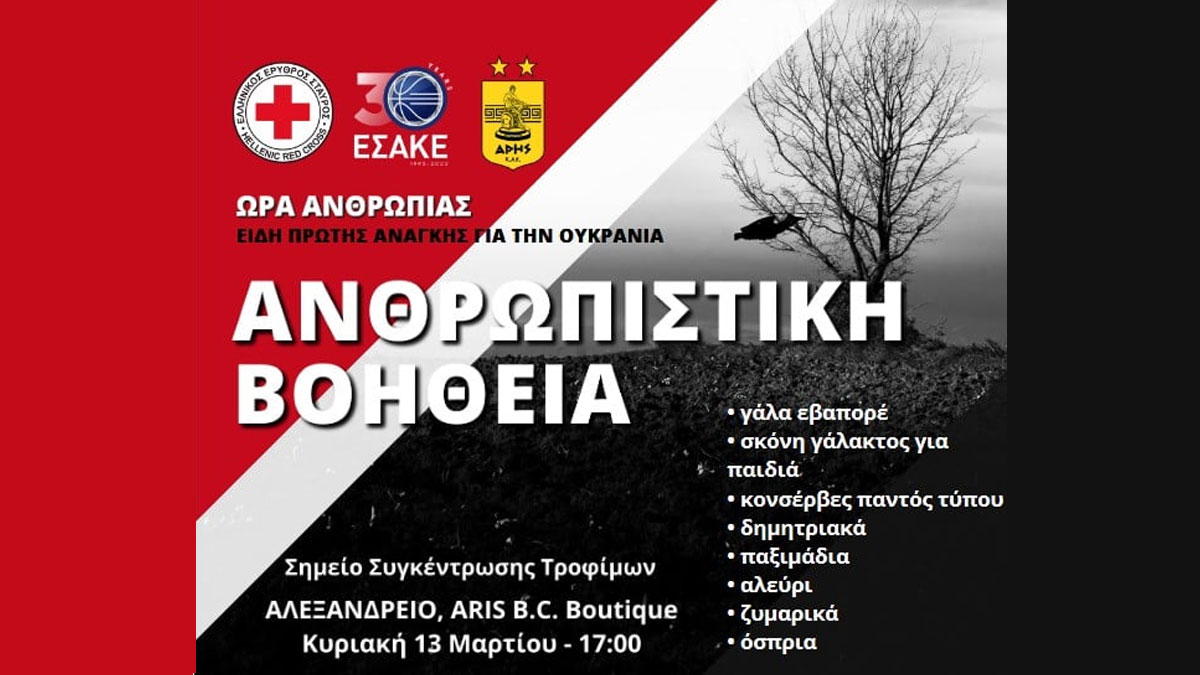 Οι δράσεις ανθρωπιστικής βοήθειας συνεχίζονται, με την ΚΑΕ Άρης να συγκεντρώνει τρόφιμα στο γήπεδο της, ενόψει του αγώνα της Κυριακής.