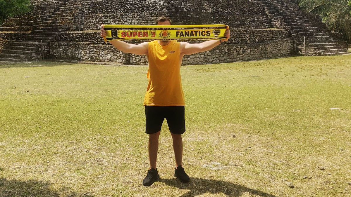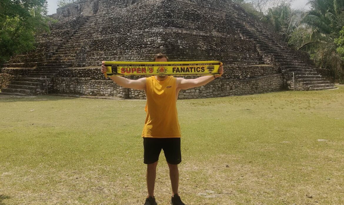 Έτσι και ο Παντελής όπως θα δείτε παρακάτω φρόντισε να απαθανατίσει μία εικόνα με το κασκόλ του Άρη μπροστά στην αρχαία πόλη των Μάγια, Τσιτσέν Ιτζά και όχι μόνο!