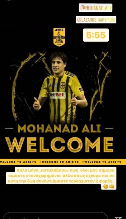 Λίγο μετά την ολοκλήρωση της θερινής μεταγραφικής περιόδου (για τους ποδοσφαιριστές που δεσμεύονται με συμβόλαιο), ο Θόδωρος Καρυπίδης προχώρησε σε μια ανάρτηση στο instagram με τη φωτογραφία της ανακοίνωσης του Μοχανάντ Άλι.