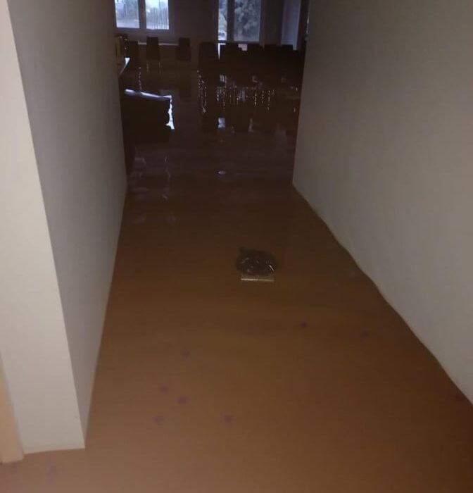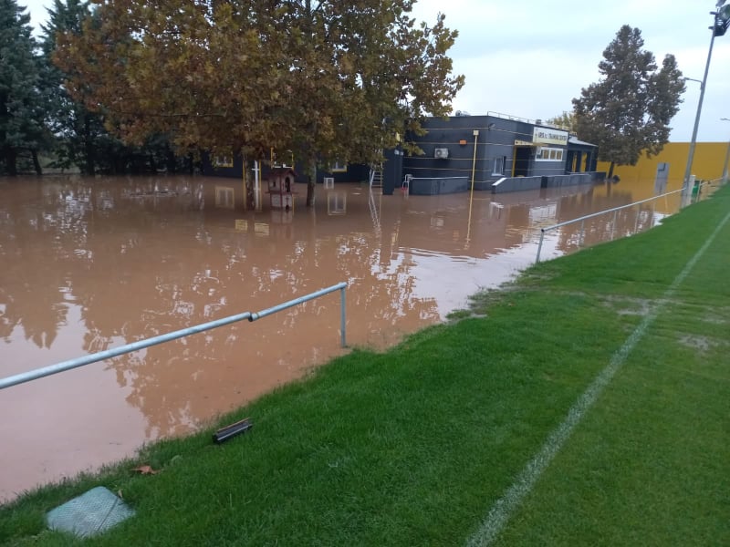 Συγκεκριμένα, η βροχόπτωση υπερχείλισε το ρέμα, το οποίο βρίσκεται πίσω από το πάρκινγκ και τα υπόλοιπα οικόπεδα της περιοχής, με αποτέλεσμα νερά να πλημμυρίσουν τα αποδυτήρια και όλους τους χώρους.