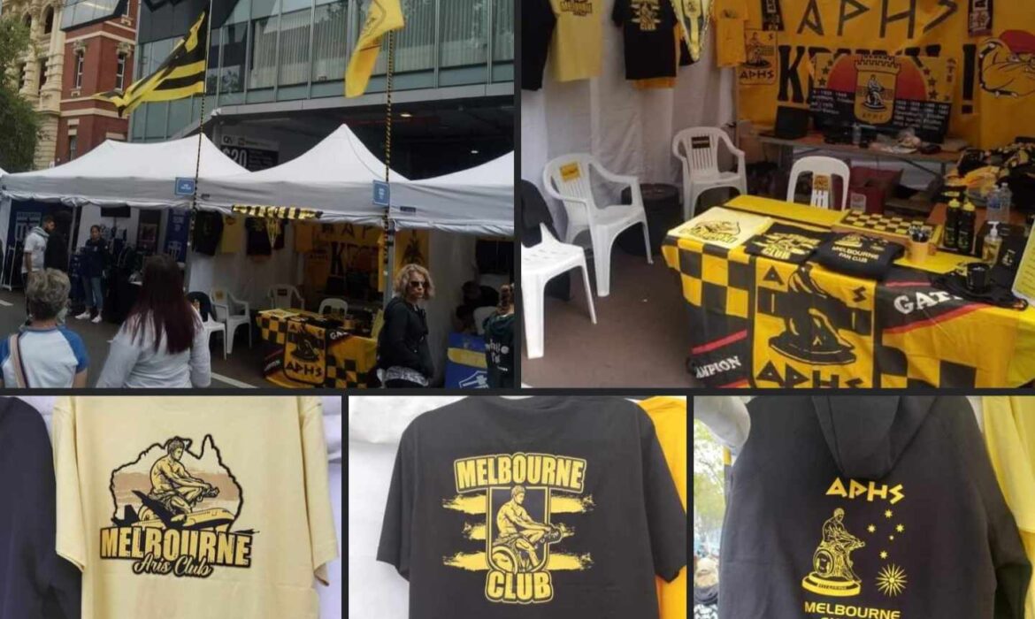 Εδώ και χρόνια οι φίλοι του Άρη έχουν το δικό τους περίπτερο και αυτό δεν άλλαξε ούτε φέτος, με τα μέλη του Aris Melbourne Club να «κιτρινίζουν» το κέντρο της Μελβούρνης φτιάχνοντας ένα πανέμορφο περίπτερο που κέντρισε τα βλέμματα.
