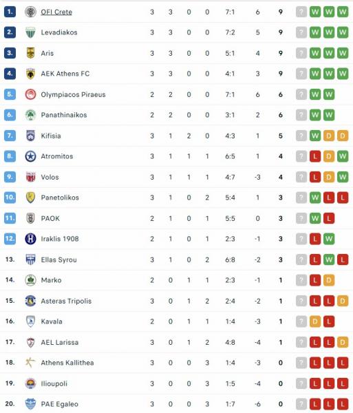 Ακόμη ΑΕΚ και ΟΦΗ έχουν από 9 βαθμούς και έχουν μεταξύ τους αγώνα. Σε περίπτωση που υπάρξει νικητής προφανώς θα φτάσεις τους 12 βαθμούς, ενώ σε ενδεχόμενο ισοπαλίας ο ΟΦΗ θα φτάσει στους 10 βαθμούς με καλύτερη διαφορά τερμάτων από τον Άρη.