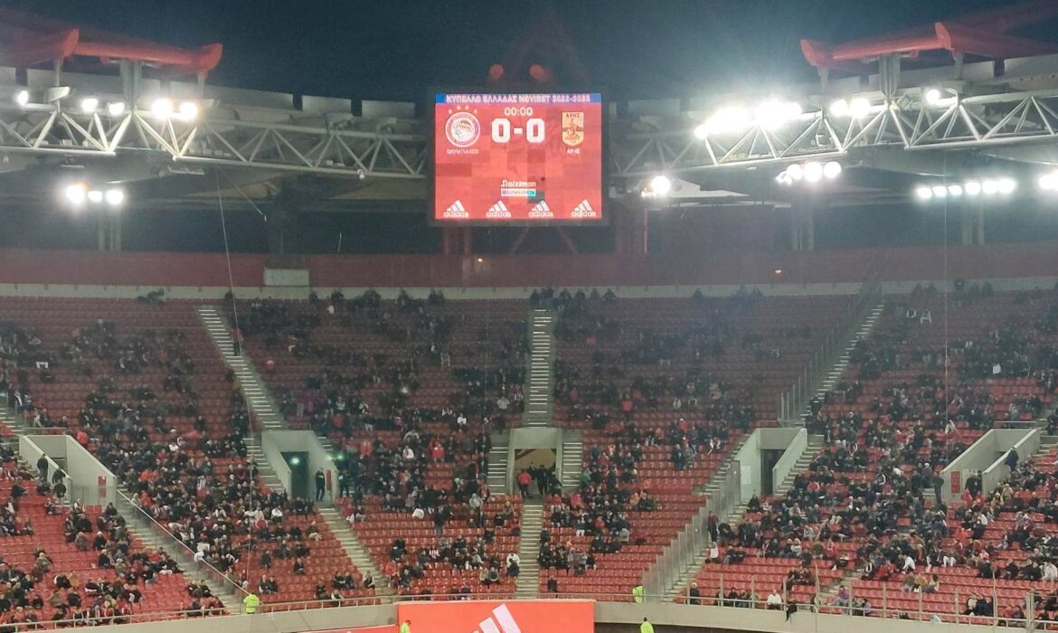 Λίγος είναι ο κόσμος στο γήπεδο Καραϊσκάκης” για το ματς Ολυμπιακός-Άρης. Δεν ξεπερνούν τους 7.000-8.000 οι φίλοι των γηπεδούχων, λίγο πριν αρχίσει το παιχνίδι. Δείτε πώς είναι το γήπεδο…