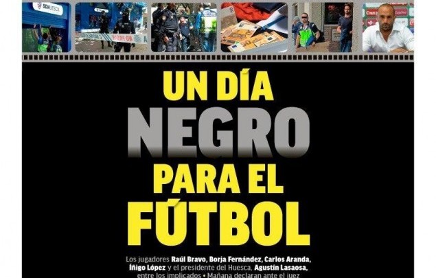 Mε μαύρο φόντο κυκλοφόρησε η γνωστή εφημερίδα Marca με αφορμή την αποκάλυψη του σκανδάλου για τα στημένα παιχνίδια