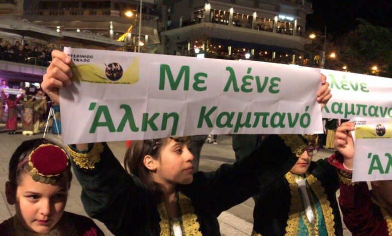 Τα ποντιόπουλα, από την κεντρική πλατεία Κοζάνης, χόρεψαν αλλά έστειλαν και τα δικά τους μηνύματα κατά της οπαδικής βίας, στην εμφάνισή τους το βράδυ της Τετάρτης. “Με λένε Άλκη Καμπανό”, ήταν το σχετικό μήνυμα, που ύψωσαν.