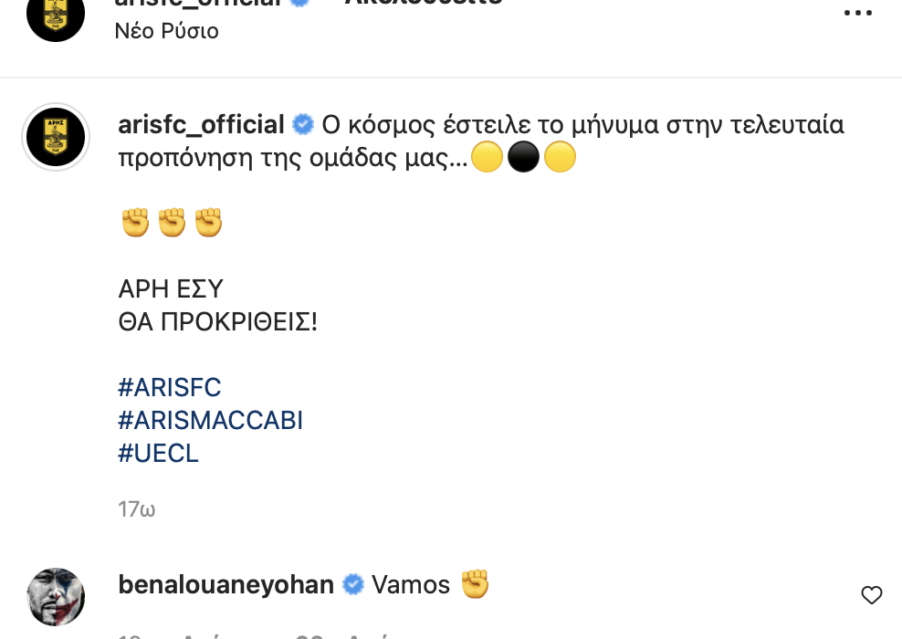 Δείτε τι σχολίασε σε χθεσινή δημοσίευση της ΠΑΕ Άρης στα social media: