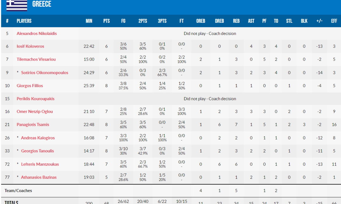 Η Εθνική ομάδα πλήρωσε τα πολλά λάθη της στο ματς με τους Γερμανούς (17 λάθη), αλλά και το γεγονός πως ήταν ιδιαίτερα άστοχη έξω από τα 6,75μ. (6/22 τρίποντα).