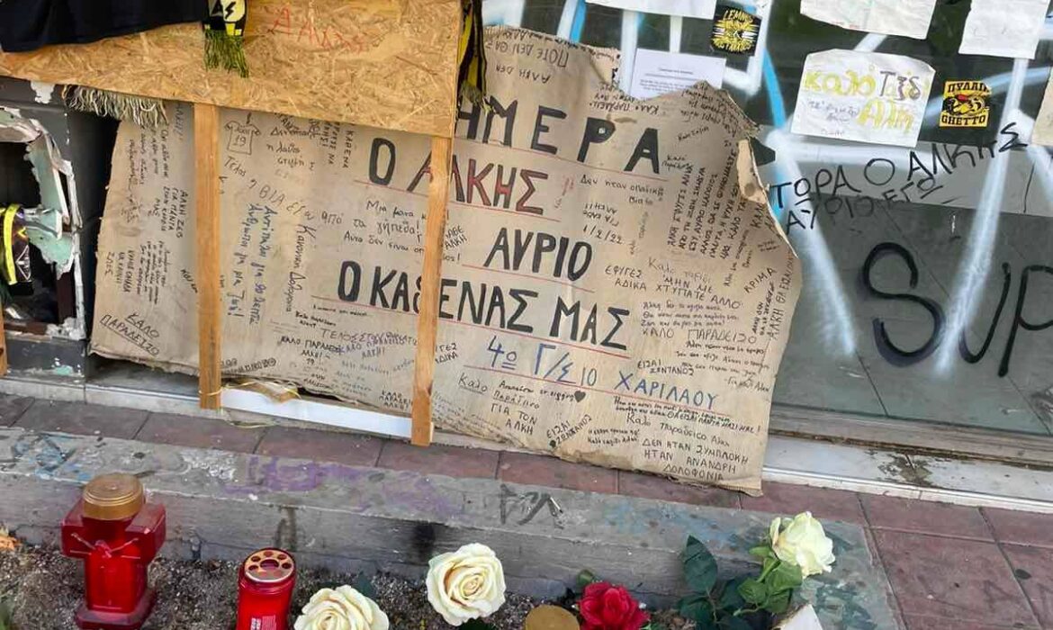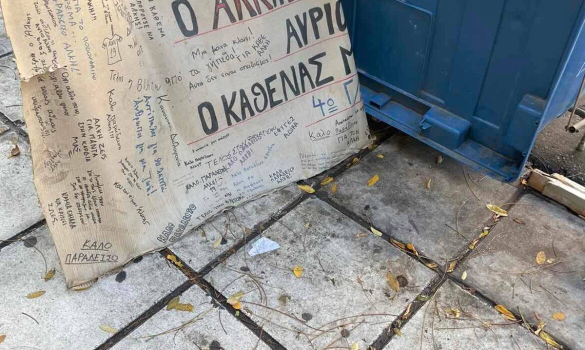 Το μνημείο στη μνήμη του Άλκη, εκεί όπου ο 19χρονος φίλος του Άρη άφησε την τελευταία του πνοή, βανδαλίστηκε με πολλά από τα σημειώματα που είχε αφήσει μεγάλη μερίδα κόσμου να έχουν βρεθεί στα σκουπίδια.