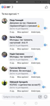 «Συγχαρητήρια, καλή επιτυχία και με τους Έλληνες» και «Μπράβο παιδιά, συνεχίστε έτσι και με τον Άρη» ήταν μερικά από τα σχόλια των φιλάθλων της Κόλος.