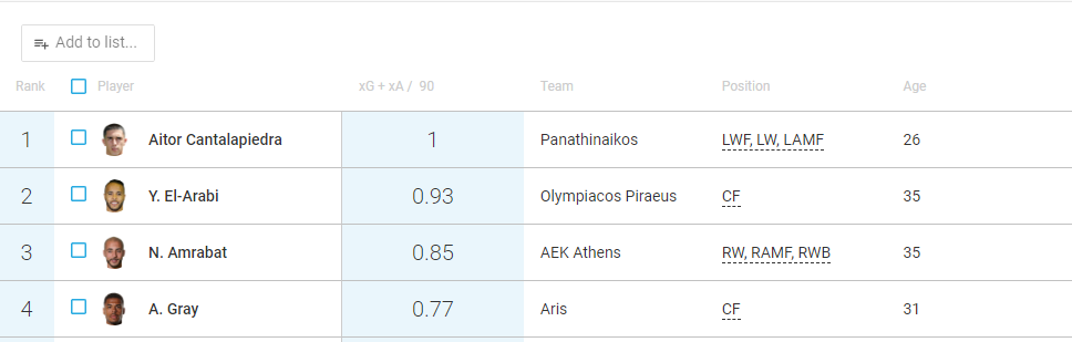 Παρακάτω μπορείτε να δείτε μία εικόνα με τα συνολικά expected goals και expected assists στην Super League: