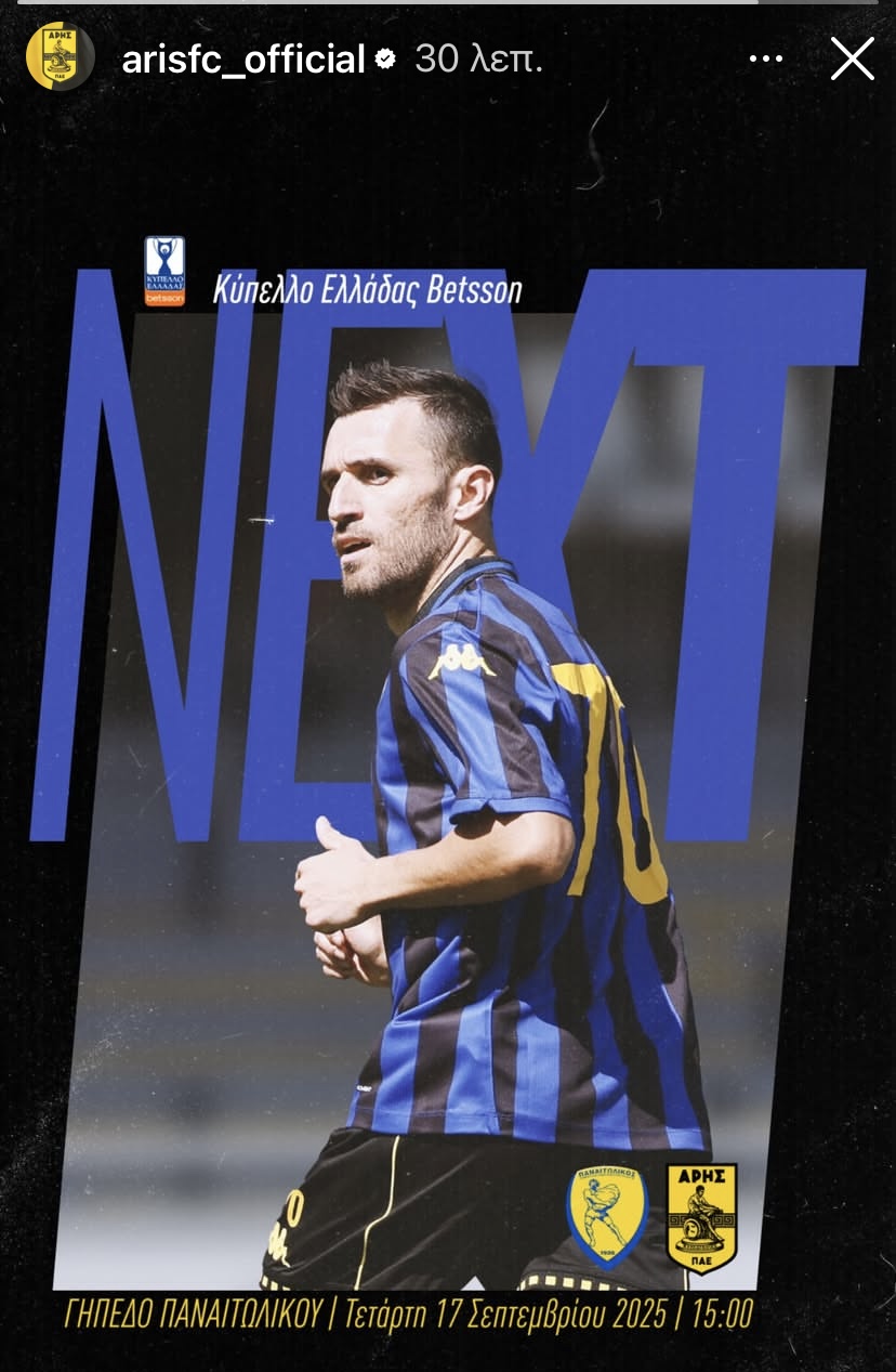 Ο Άρης ξεκινάει την πορεία του στο Κύπελλο Ελλάδας την Τετάρτη (17/09), αντιμετωπίζοντας εκτός έδρας τον Παναιτωλικό στο Αγρίνιο με την ΠΑΕ να επιλέγει τον Γιαννιώτα ως το κεντρικό πρόσωπο της ανάρτησής της.