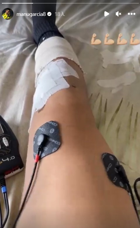 Με τον Ισπανό ποδοσφαιριστή του Άρη να ανεβάζει ένα στόρι στα social media και να μοιράζεται την πρόοδο της κατάστασης του ποδιού του με τους φίλους της ομάδας.