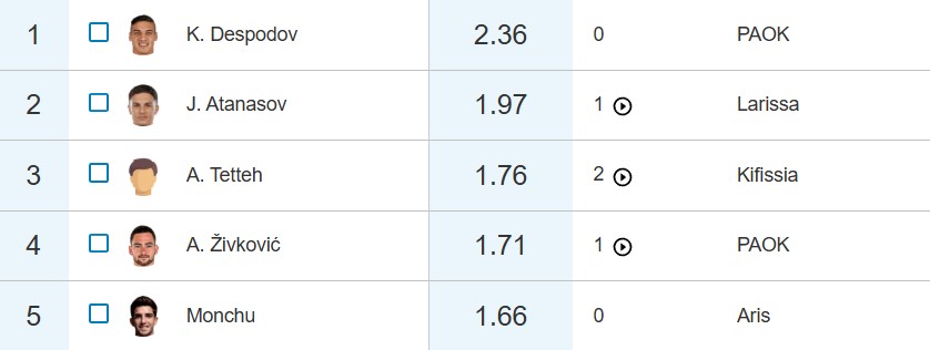 Κοντά στη μία expected assist έχουν επίσης οι Γιαννιώτας, Τεχέρο και Μορόν. Ο πρώτος δεν έχει δει δημιουργία του να μετατρέπεται σε γκολ από τους συμπαίκτες του, ο Τεχέρο έχει δύο και ο Μορόν μία ασίστ.