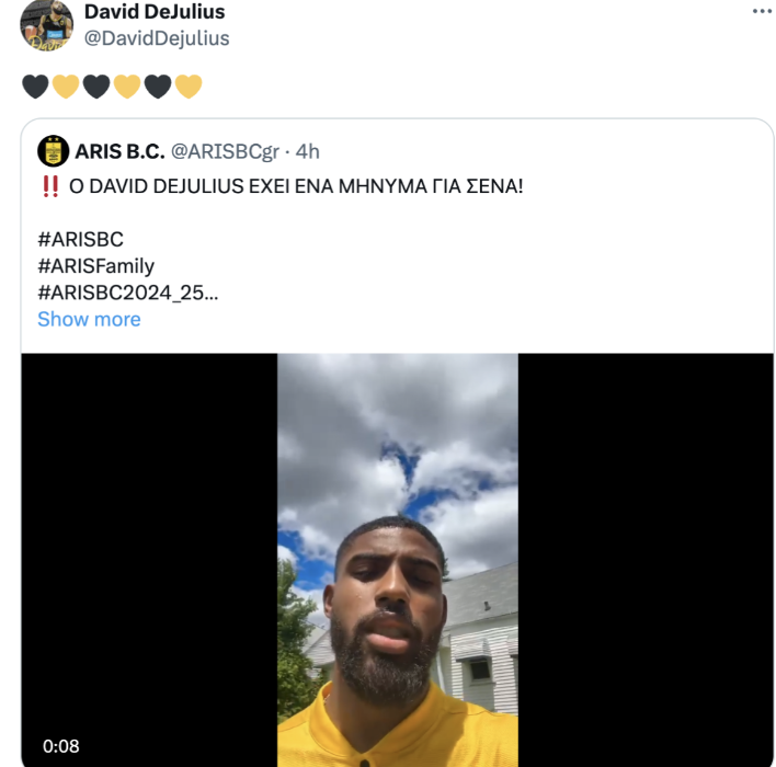 Ο Αμερικανός αθλητής κοινοποίησε τις πρώτες του δηλώσεις ως παίκτης του Άρη και πρόσθεσε στη δημοσίευση κιτρινόμαυρες καρδιές δείχνοντας ότι πλέον μπαίνει σε ρυθμούς Αυτοκράτορα!