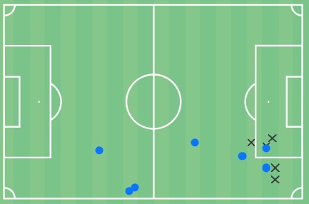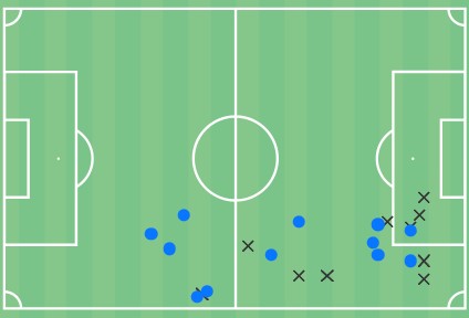 Ακόμη είχε επτά επιτυχημένες ντρίμπλες σε σύνολο 12 προσπαθειών, δείχνοντας ότι μπορεί να προσφέρει και στον συγκεκριμένο τομέα.