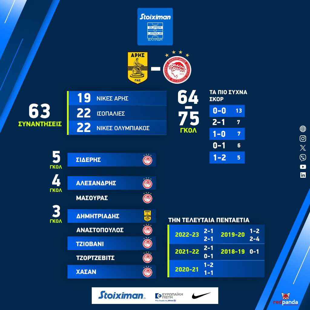 Η Superleague δημοσίευσε τους… αριθμούς των αναμετρήσεων ανάμεσα στις δύο ομάδες, τις τελευταίες 63 φορές που έχουν έρθει αντιμέτωπες.