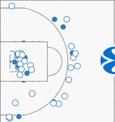 Ο μοναδικός παίκτης του Άρη που βρήκε σουτ μακριά από το ζωγραφιστό είναι ο Ρόμπερτ Γκάλινατ, που πέτυχε πέντε σουτ από μέση και μακρινή απόσταση. Την ίδια στιγμή όλοι οι υπόλοιποι παίκτες του Άρη πέτυχαν μόλις άλλα πέντε σουτ έξω από τα 6,75 ενώ δεν βρήκαν κανένα σουτ από μέση απόσταση.