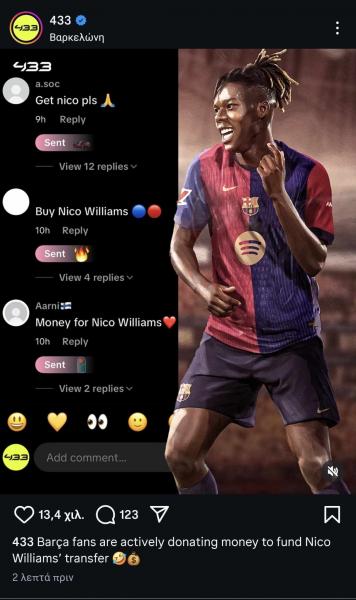 Οι οπαδοί των «μπλαουγκράνα» προσπαθούν να βοηθήσουν τη διοίκηση της Μπαρτσελόνα να συγκεντρώσει τα απαιτούμενα χρήματα για τη μεταγραφή του Νίκο Γουίλιαμς.