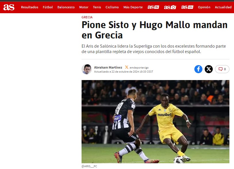 Η γνωστή ισπανική εφημερίδα στην ηλεκτρονική της έκδοση έκανε αναφορά στον Άρη και ειδικότερα στους Πιόνε Σίστο και Ούγκο Μάγιο