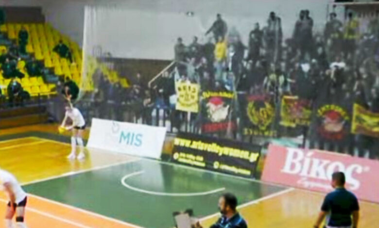 Παντού, είναι εκεί… Ο κόσμος του Άρη βοηθάει την ομάδα στο μπάσκετ, στο ποδόσφαιρο αλλά και στο βόλεϊ Γυναικών. Αρκετοί φίλοι των “κιτρίνων” έχουν δώσει το παρών στο ντέρμπι των αήττητων ομάδων του πρωταθλήματος, με τον κόσμο του Άρη να προσπαθεί να δώσει ώθηση στα κορίτσια του βόλεϊ.