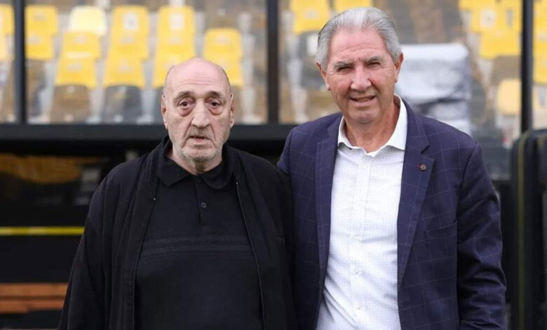Δύο θρύλοι του Άρη, ο Ντίνος Κούης και ο Αλέκος Αλεξιάδης, βρέθηκαν σήμερα και φωτογραφήθηκαν στο “Κλ. Βικελίδης”