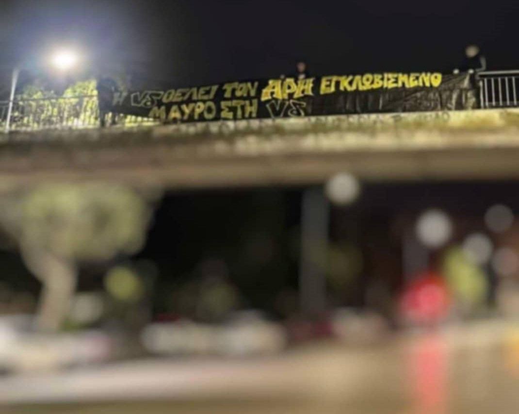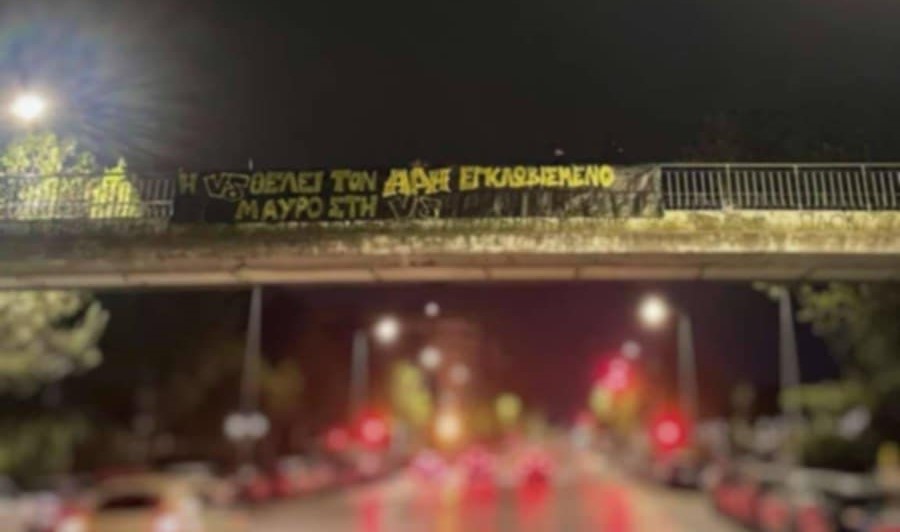 Φίλοι του Άρη κρέμασαν πανό σε διάφορα σημεία της πόλης, θέλοντας να στείλουν τα μηνύματά τους στην Κυβέρνηση της ΝΔ.